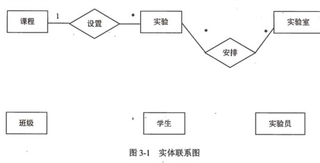 某学校拟开发一套实验管理系统,对各课程的实验安排进行管理。 【需求分析】 每个实验室可进行的实验类型不同。由于实验室和实验员资源有限,需根据学生人数分批次安排实验室和实验员。一门含实验的课程可以开设给多个班级,每个班级每学期可以开设多门含实验的课程。每个实验室都有其可开设的实验类型。一门课程的一种实验可以根据人数、实验室的可容纳人数和实验室类型,分批次开设在多个实验室的不同时间段。一个实验室的一次实验可以分配多个实验员负责辅导实验,实验员给出学生的每次实验成绩。 1.课程信息包括:课程编号、课程名称、实验学时、授课学期和开课的班级等信息;实验信息记录该课程的实验进度信息,包括:实验名、实验类型、学时、安排周次等信息,如表3-1所示。