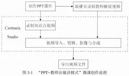 近年来,微课成为教育信息化的“宠儿”。微课制作方式多种多样,其中“PPT+教师出镜讲授式”微课制作方案具有操作简单、容易上手、可以给学习者课堂真实感的特点。该类型微课制作流程如图3-1所示。