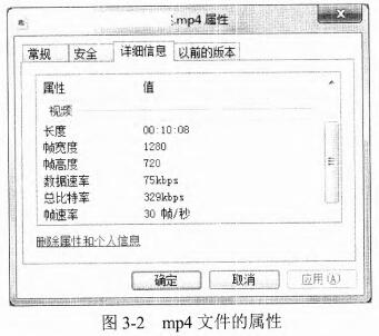 问题:3.4   在Camtasia Studio中,视频编辑完成后,打开“文件一发布共享”进入发布窗口,选择使用MP4only(up to 720p)格式,导出的mp4文件的属性如图3-2所本。