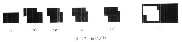 请写出(a) — (b)、(b) — (c)、(c) — (d)、(d) — (e) — (f)对应的四个布尔运算。