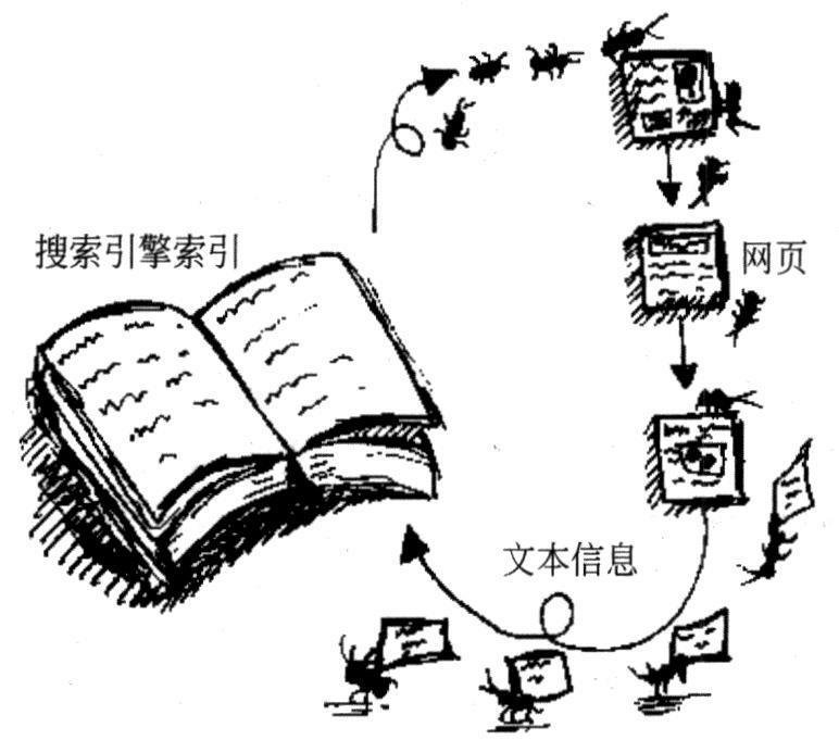 每个独立的搜索引擎都有自己的网页抓取程序爬虫(spider)。爬虫顺着网页中的超链接从一个网站爬到另一个网站,通过超链接分析连续访问并抓取更多的网页,被抓取的网页称为网页快照。由于互联网中超链接的应用很普遍,因此理论上从一定范围的网页出发就能搜集到绝大多数的网页。