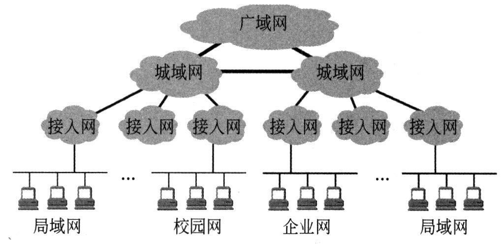 ④接入网。接入网又称本地接入网或居民接入网,是局域网和城域网之间的桥接区,接入网提供多种高速接入技术,从某种程度上解决了用户接入Internet的瓶颈。