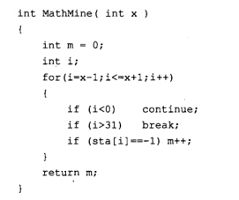 针对以下C语言程序段,假设sta[10]=-1,对于x的取值,需要(56)个测试用例能够满足分支覆盖的要求。