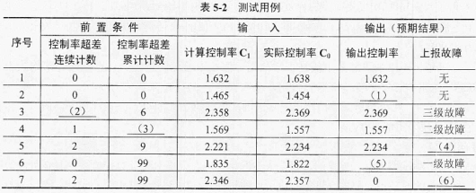 为了测试控制率计算算法,在不考虑测量误差的情况下,设计了表5-2所示的用例,请完善其中的空(1)~(6)。