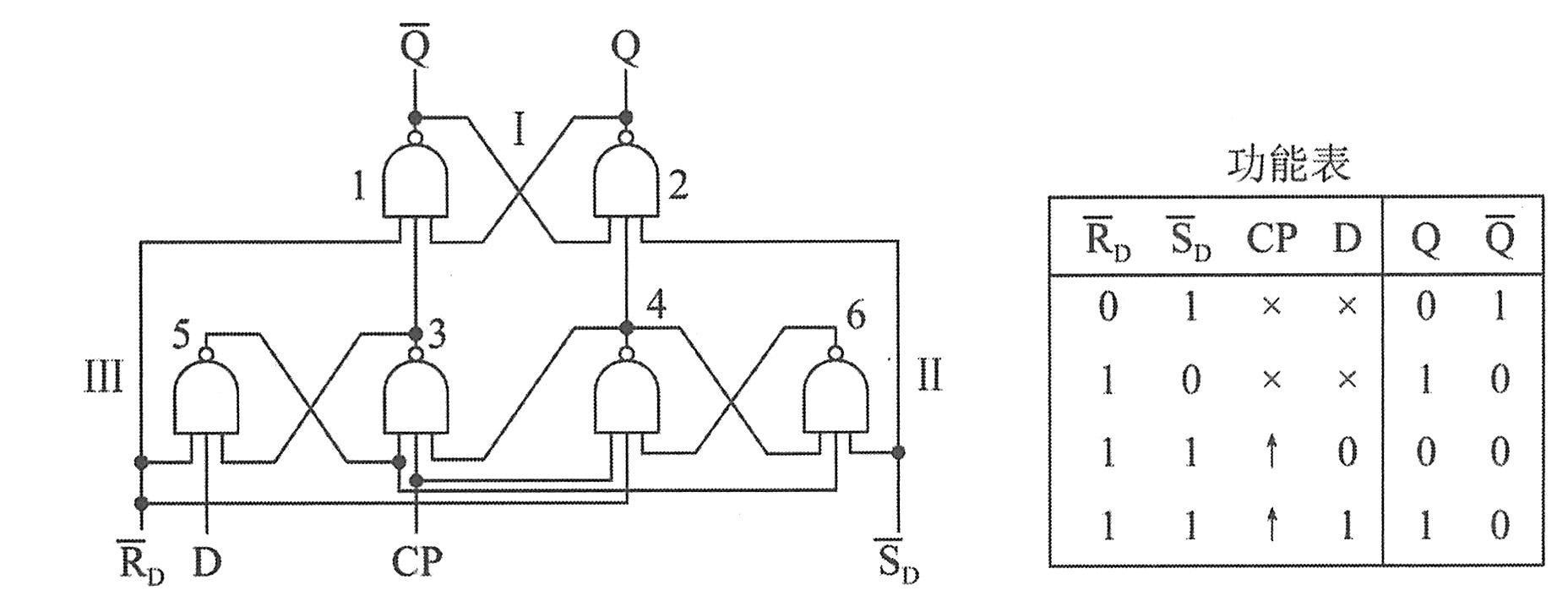 常用的正边沿触发器是D触发器,下图给出了它的逻辑图及功能表。