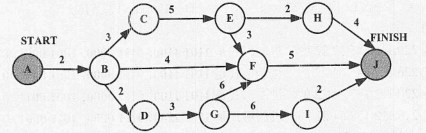 某软件项目的活动图如下图所示,其中顶点表示项目里程碑,连接顶点的边表示包含的活动,边上的数字表示活动的持续时间(天),则完成该项目的最少时间为(33)天。活动BC和BF分别最多可以晚开始(34)天而不会影响整个项目的进度。
