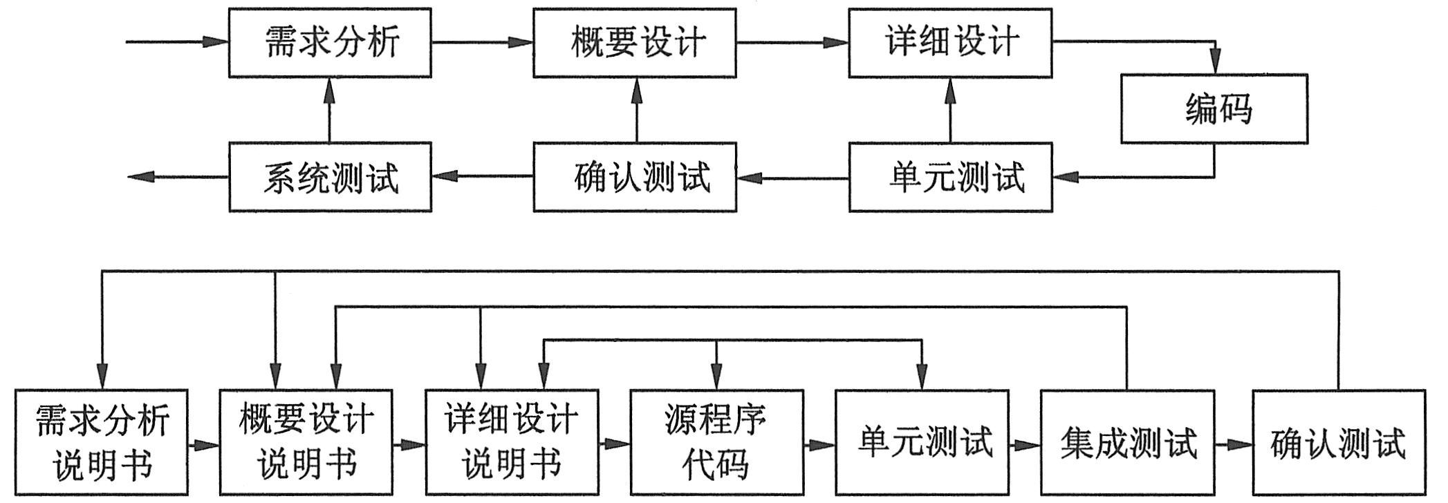 软件开发过程是一个自顶向下,逐步细化的过程。首先,在软件计划阶段定义了软件的作用域,然后进行软件需求分析,建立软件的数据域、功能和性能需求、约束及一些有效性准则。接着进入软件开发,进行软件设计,把设计用某种程序设计语言转换成程序代码。而测试过程则是依照相反的顺序安排自底向上,逐步集成的过程。低一级测试为上一级测试准备条件。当然不排除两者平行地进行测试。