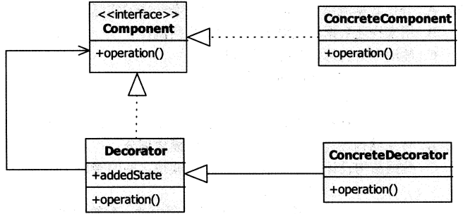 下图是(47)设计模式的类图,该设计模式的目的是(48),图中,Decorator和Component之间是(49)关系, ConcreteDecorator和Decorator之间是(50)关系。