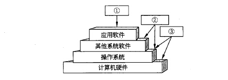 操作系统是裸机上的第一层软件,其他系统软件(如(22)等和应用软件都是建立在操作系统基础上的。下图①②③分别表示(23)。