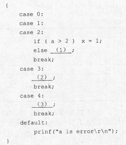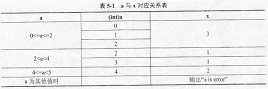 阅读以下说明和C程序代码,回答问题1至问题3,将答案填入答题纸的对应栏内。【说明】 【程序1】是关于条件编译的一段程序示例; 【程序2】是一段switch语句应用示例。C语言要求switch之后圆括弧内的“表达式”类型必须是整型或字符型。该程序代码中a与x的对应关系如表5-1所示。