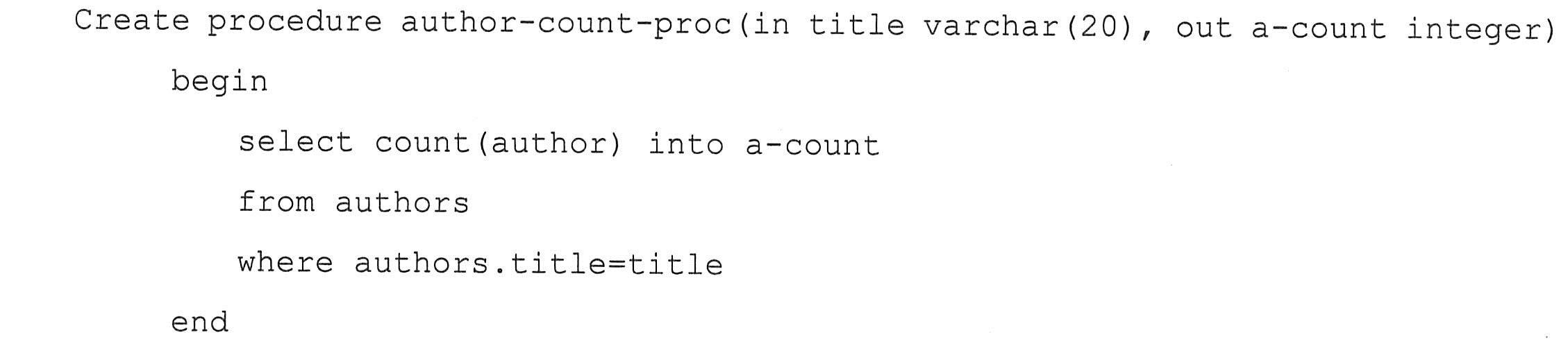 SQL-99也支持过程。author-count函数也可以写成一个过程: