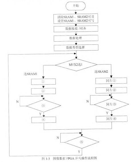 在红外热像仪系统中,FPGA完成红外图像的采集与预处理,包括前端探测器驱动、数据采集与整形、数据预处理、SRAM控制器、ARM通信等,在整个数据采集过程中,FPGA将接收到的红外图像数据采用“乒乓”结构交持不断写入两块SRAM中,FPGA在进行数据写入时,ARM不能读取相应区的数据,FPGA每写完一帧数据,就通过寄存器通知ARM取数据,新的一帧数据写入另一块SRAM。这样就避免了红外探测器图像采集时钟与ARM的图像处理帧频时钟的不匹配问题。