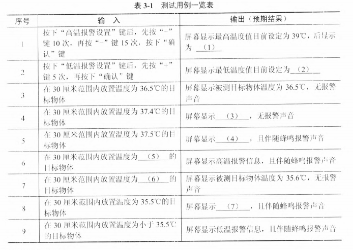 为了测试软件功能,测试人员设汁了表3-1所示的测试用例,请填写该表中的空白(1)-(7)。