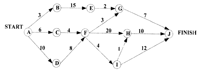 下图是一个软件项目的活动图,其中顶点表示项目里程碑,连接顶点的边表示包含的活动,边上的权重表示活动的持续时间(天),则关键路径长度为(17)天。在该活动图中,活动(18)晚16天开始不会影响工期。