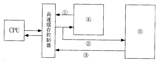 高速缓存控制器负责 CPU高速缓存/主存之间进行通信控制,如下图所示。图中①、②、③、④、⑤对应的分别是()。
