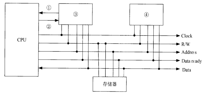 下面的DMA控制器总线示意图中,①、②、③、④对应的分别是()。