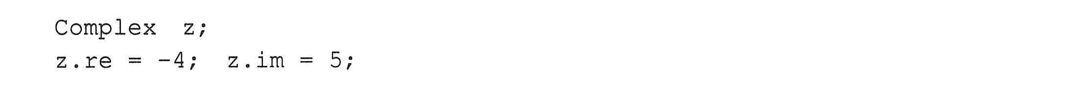 例如,定义结构体变量z,将-4和5分别赋值给一个复数z的实部成员变量和虚部成员变量: