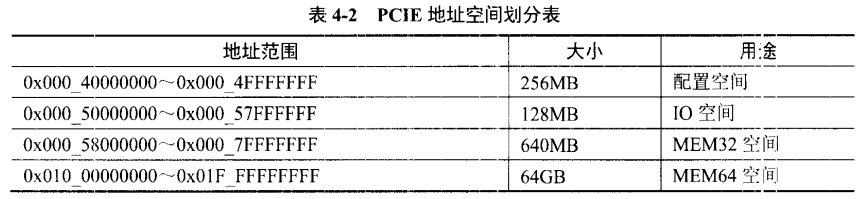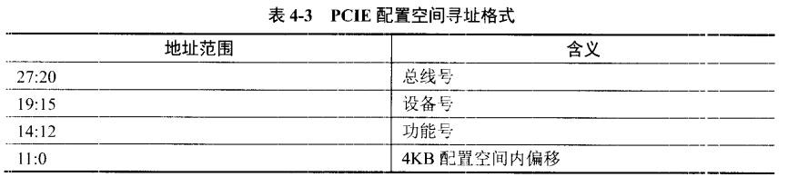 当地址位于PCIE配置空间时,将按照表4-3格式进行解析。