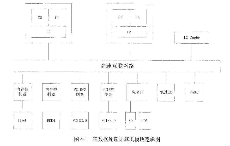 某数据处理计算机模块基于FT-2000/4处理器设计,模块逻辑图如图4-1所示。