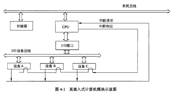 阅读以下关于中断的叙述,回答问题1至问题4,将答案填入答题纸的对应栏内。【说明】 在某嵌入式系统中,王工设计的计算机模块如图4-1所示。它要求CPU在执行完当前指令后转而对中断请求进行处理。假定:TDC为查询链中每个设备的延迟时间,Ta、Tb、Tc分别为设备A、B、C的中断服务程序所需的执行时间,TS和TR为保存现场和恢复现场所需的时间。