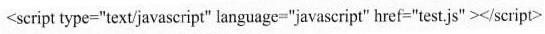 引用外部JavaScript脚本文件“test.js”的正确形式是(64)。