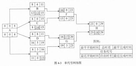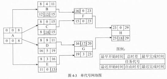 问题:4.4   请根据项目计划甘特图,将该项目的单代号网络图即图4-3补充完整。