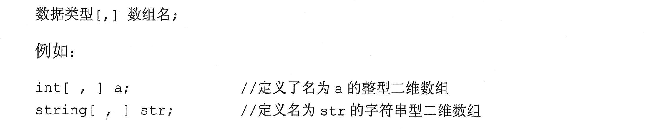 在C#语言中,多维数组可看作是数组的数组,即高维数组中的每一个元素本身也是一个低维数组,二维数组的定义格式: