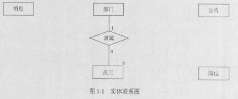 阅读下列说明,回答问题1至问题3。 【说明】 某企业拟构建一个高效、低成本、符合企业实际发展需要的办公自动化系统。工程师小李主要承担该系统的公告管理和消息管理模块的研发工作。公告管理模块的主要功能包括添加、修改、删除和查看公告。消息管理模块的主要功能是消息群发。 小李根据前期调研和需求分析进行了概念模型设计,具体情况分述如下。 【需求分析结果】 (1) 该企业设有研发部、财务部、销售部等多个部门,每个部门只有一名部门经理,有多名员工,每名员工只属于一个部门。部门信息包括:部门号、名称、部门经理和电话,其中部门号唯一确定部门关系的每一个元组。 (2) 员工信息包括:员工号、姓名、岗位、电话和密码。员工号唯一确定员工关系的每一个元组;岗位主要有经理、部门经理、管理员等,不同岗位具有不同的权限。一名员工只对应一个岗位,但一个岗位可对应多名员工。 (3) 消息信息包括:编号、内容、消息类型、接收人、接收时间、发送时间和发送人。其中(编号,接收人)唯一标识消息关系中的每一个元组。•条消息可以发送给多个接收人,一个接收人可以接收多条消息。 (4) 公告信息包括:编号、标题、名称、内容、发布部门、发布时间。其中编号唯一确定公告关系的每一个元组。一份公告对应一个发布部门,但一个部门可以发布多份公告;一份公告可以被多名员工阅读,一名员工可以阅读多份公告。 【概念模型设计】 根据需求分析阶段收集的信息,设计的实体联系图(不完整)如图1-1所示。