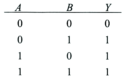 两个逻辑变量的或逻辑关系表达式:Y=A+B(或Y=AB)。