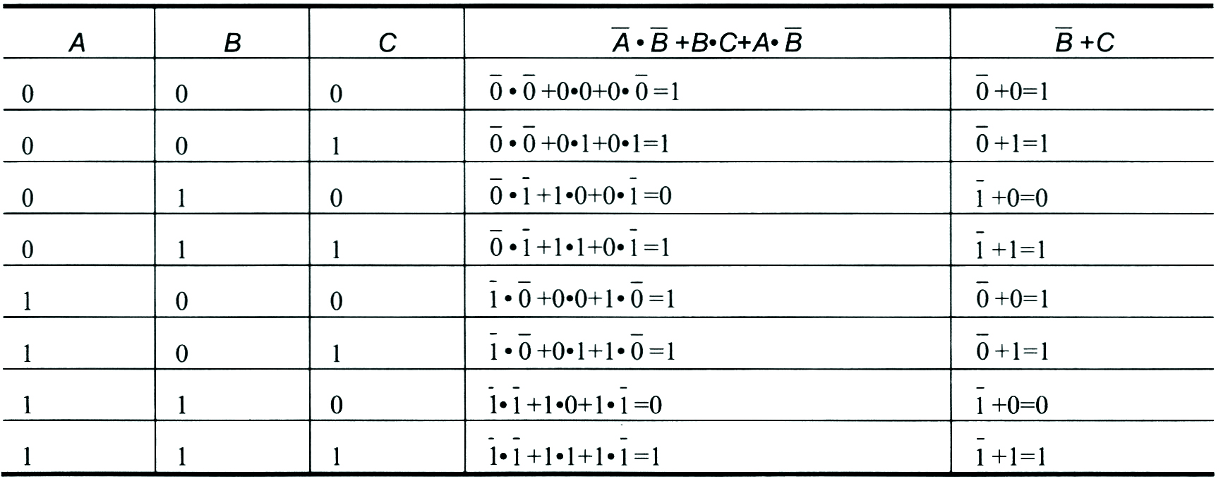 解:AB、C的所有逻辑取值,如下表所示,两个逻辑表达式的函数值相等,证毕。
