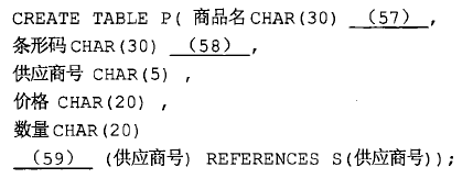 设有商品关系P (商品名,条形码,供应商号,价格,数量),“条形码”唯一标识关系P中的每一个元组,商品名不能为空,供应商号是关系P的外键。另有供应商关系S (供应 商号,供应商名,地址,电话)。关系P中的商品名是唯一的。建立商品关系P的SQL语句如下所示: