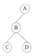 已知某二叉树的先序遍历序列为ABCD,后序遍历序列为CDBA,则该二义树为(40)。
