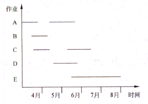 下图是某工程A〜E五个作业的进度计划。按照该计划,到5月31日检查时,已完成作业数、已经开始但尚未完成的作业数以及尚未开始的作业数应分别为(64)。