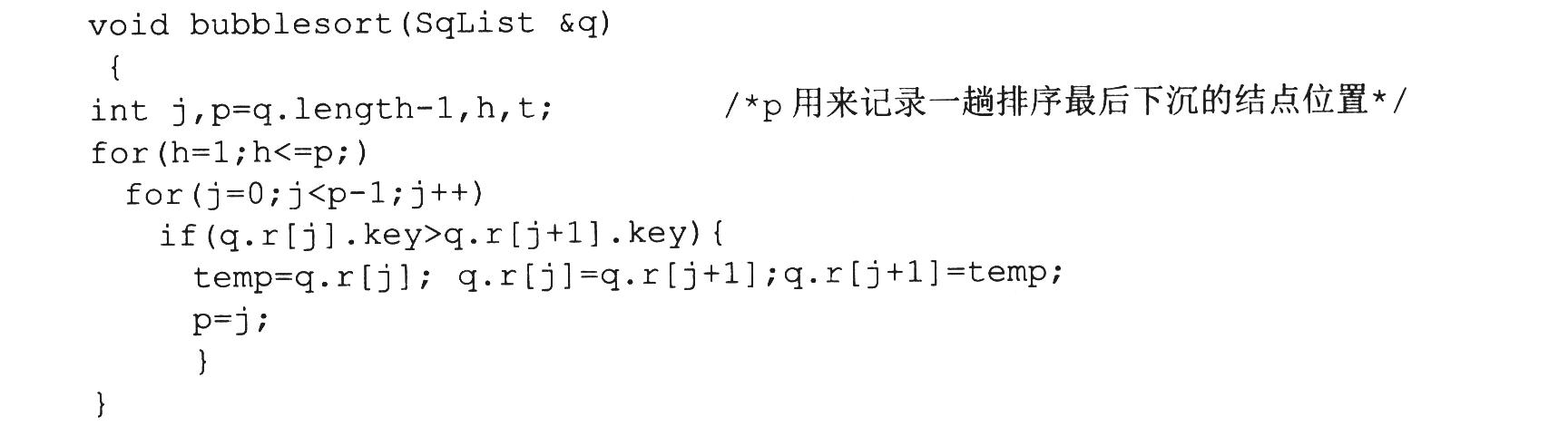 (3)整个排列过程最多执行n-1趟。若某一趟的比较没有结点交换,所有相邻结点的排列顺序都与排序要求一致,则线性表为有序的。