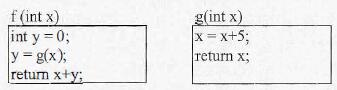 函数f()、g()的定义如下所示 ,已知调用f时传递给其形参x的值是10。若在f中以传值方式调用g,则函数f的返回值为(30);若以引用方式调用g,则函数f的返回值为(31)。