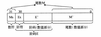 其中,1位数符(S):正数为0,负数为1;除去了最高位的尾数(f)为原码表示;阶码(E)为特殊移码表示。