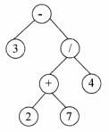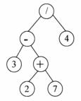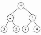 与算术表达式3-(2+7)/4对应的二叉树为(32)。
