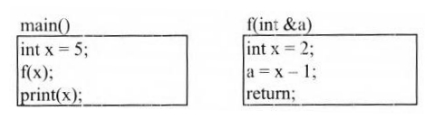 函数main()、f()的定义如下所示。调用函数f()时,采用引用调用方式(call by reference), 从函数f()返回后,main()中x的值为(35)。