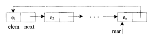 假设队列采用不含头结点的循环单链表示,rear指向队尾结点,如下图所示,其中,结点的数据域elem表示元素值,指针域next指向后继结点,那么表示队列中仅有一个元素的条件是()。