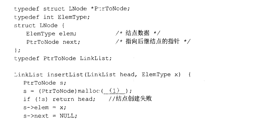 以元素值为整数的单链表为例,需要先定义链表中结点的类型,下面将其命名为Node,而LinkList则是指向Node类型变量的指针类型名。