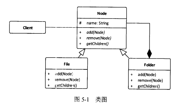 某系统需根据类别和内容对数据以文件夹的方式进行组织,数据自身以文件的形式存储,文件夹可以包含文件夹和文件。为该系统设计的相关类及其关系如图5-1所示。