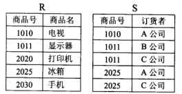 对关系S进行(62)运算,可以得到表1,对关系R和S进行(63)运算,可以得到表2