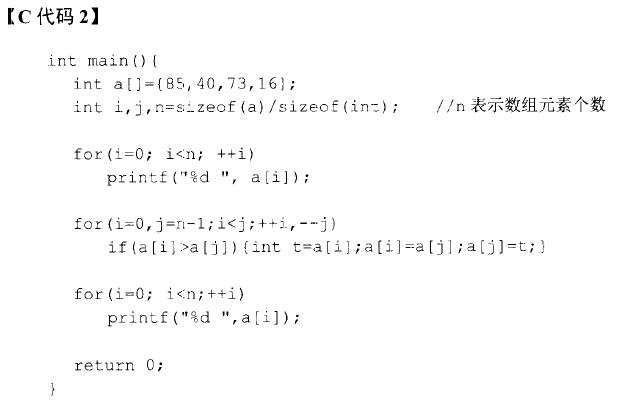 (2)将代码2中数组a的定义修改为“ int a[6] = {85, 40 , 73, 16}; ” 后再编译运行,请写出对应的输出结果。