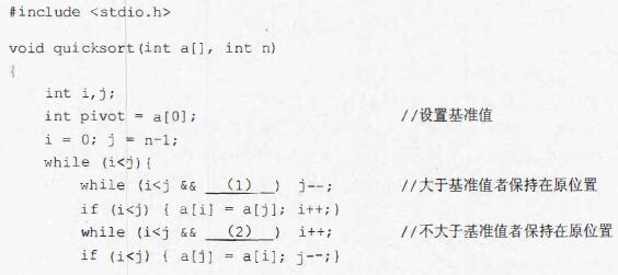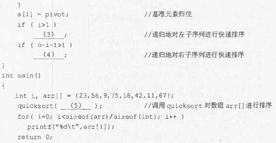函数quicksort(int a[], int n)实现了快速排序,其中,n个整数构成的待排序列保存在 数组元素a[0]?a[n-1]中。