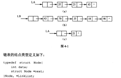 例如,单链表LA、LB的示例如图4-1中的(a)、(b)所示,删除与LB共有的元素后的LA如图4-1中的(c)所示。
