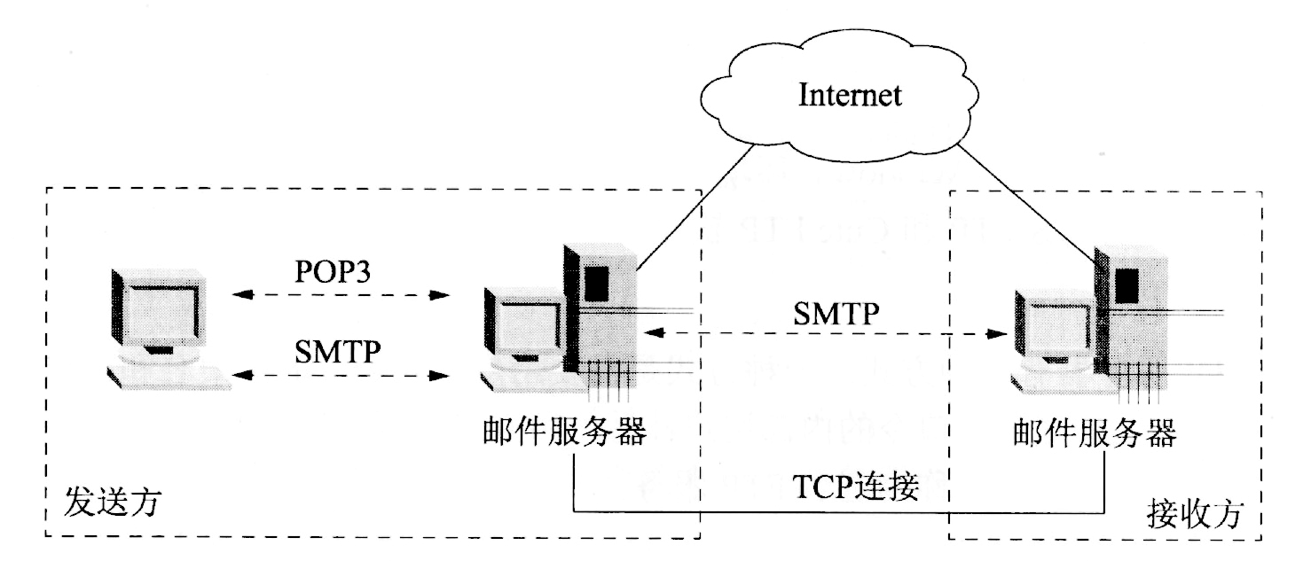 电子邮件的发送由简单邮件传输协议(SMTP)服务器来完成。它好比是邮局的邮筒,将信投入后,由邮局定时发送。接收邮件由邮局协议(POP3)服务器来完成,来信都存放于此,用户通过电子邮件软件来取信。