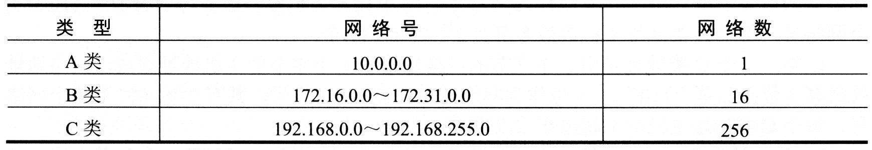 如果一个组织不需要接入到互联网上,但需要在其网络上运行TCP/IP协议,最佳选择是使用保留地址。保留地址不需要从互联网管理机构申请,任何组织都可以使用这些地址。这些地址在一个组织内部是唯一的,但从全局来看却不是唯一的。同时互联网的路由器也不转发目标地址为保留地址的数据包。保留地址如下表所示。