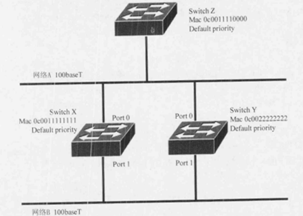 由3台交换机X、Y、Z连接两个子网A和B组成二个交换局域网,每台交换机MAC地址和优先级配置如下图所示。根据STP协议,交换机(38)将被选为根网桥交换机X的端口Port 0成为(39)。如果网络B把交换机X前端口Port 1选为指定端口,则被阻塞的端口是(40)。