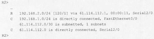 在路由器R2上采用show ip rout命令得到如下所示结果。