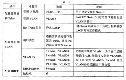 【说明】 某园区组网方案如图1-1所示,网络规划如表1-1内容所示。